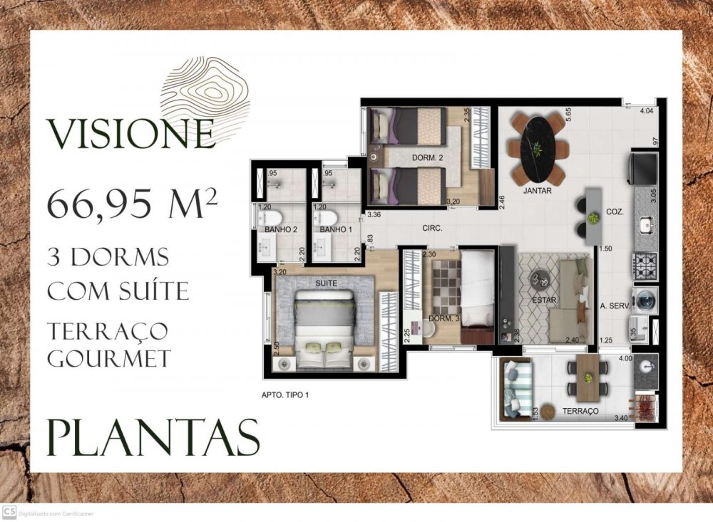 - Área Privativa: 66,95 m²