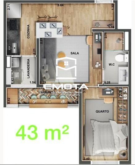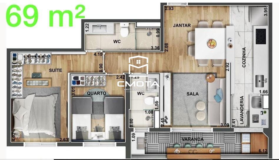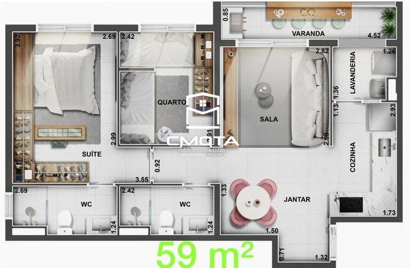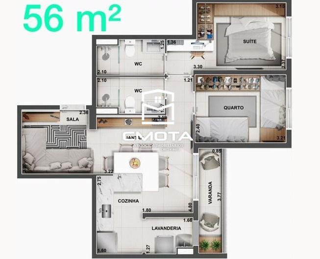 Apartamento em Venda com 2 dormitórios, sendo 1 suíte, 59 m²