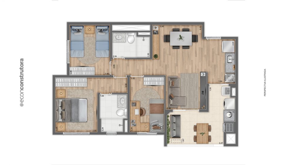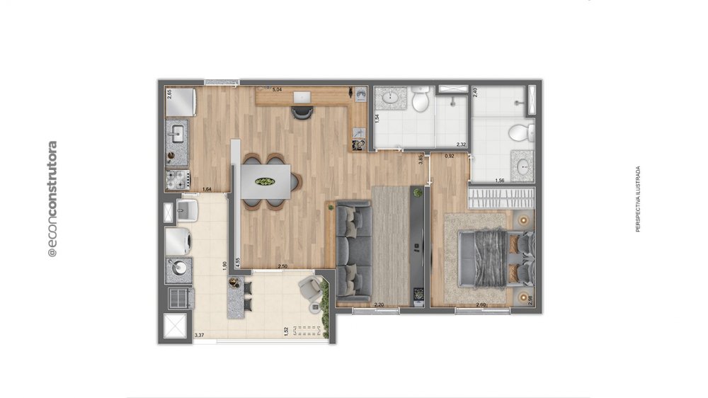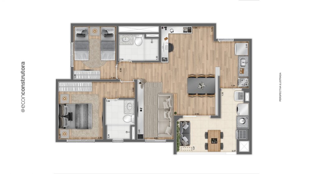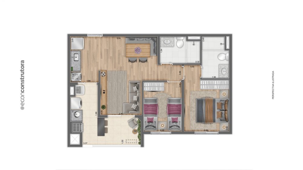 57m² com 2 dormitórios