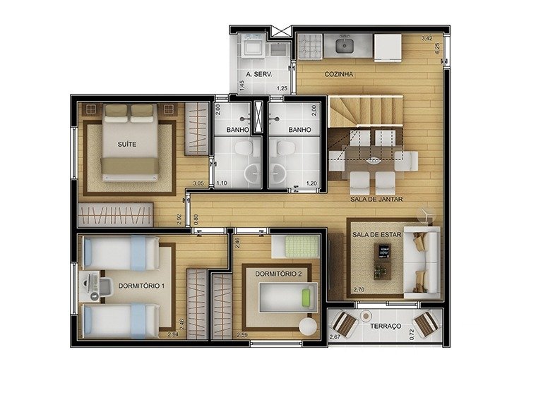 Apartamento à Venda com 3 dormitórios, sendo 1 suíte, 59 m²